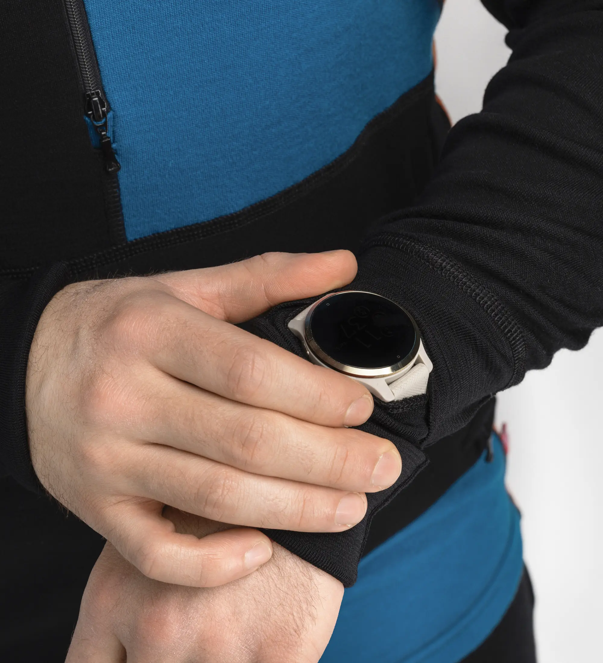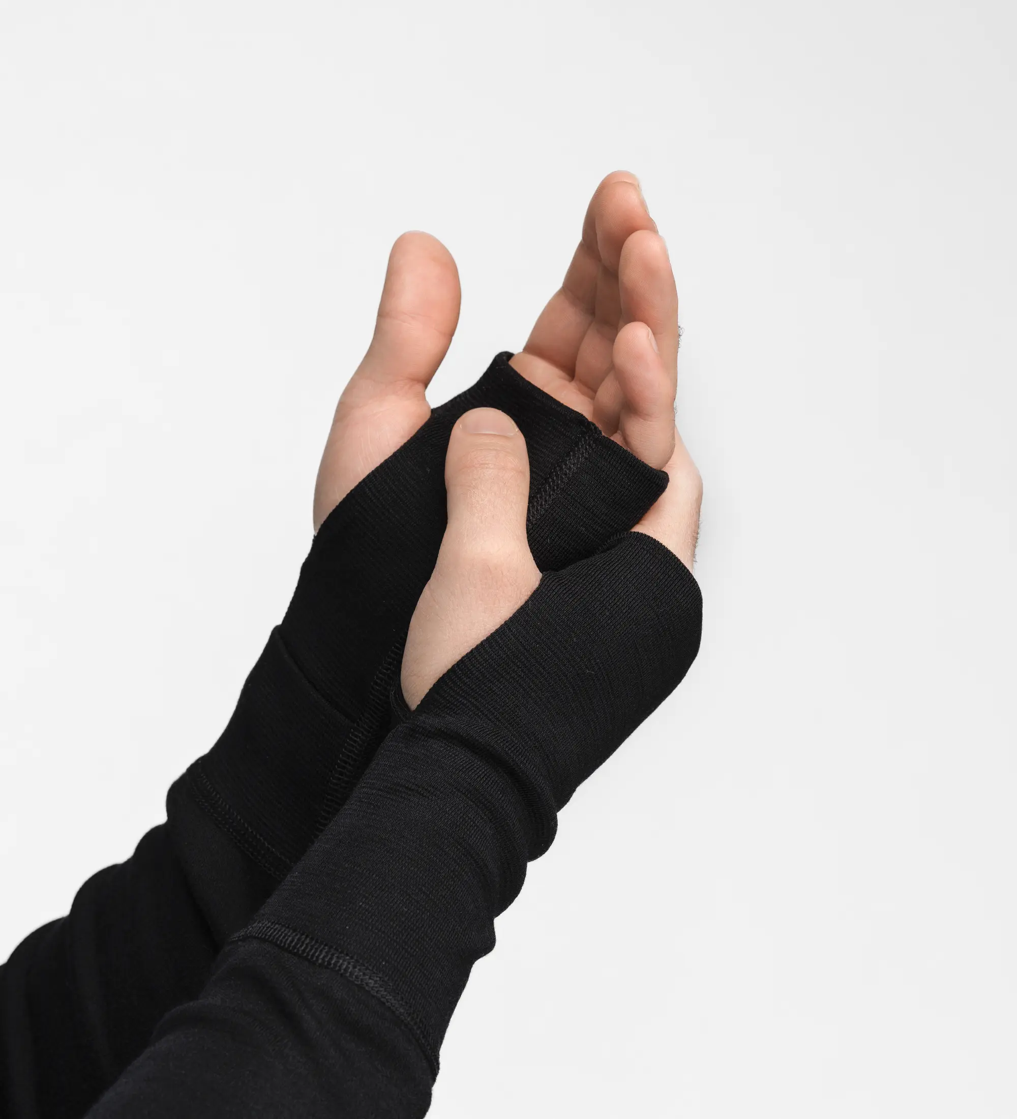 - otwory na kciuk w mankietach rękawów