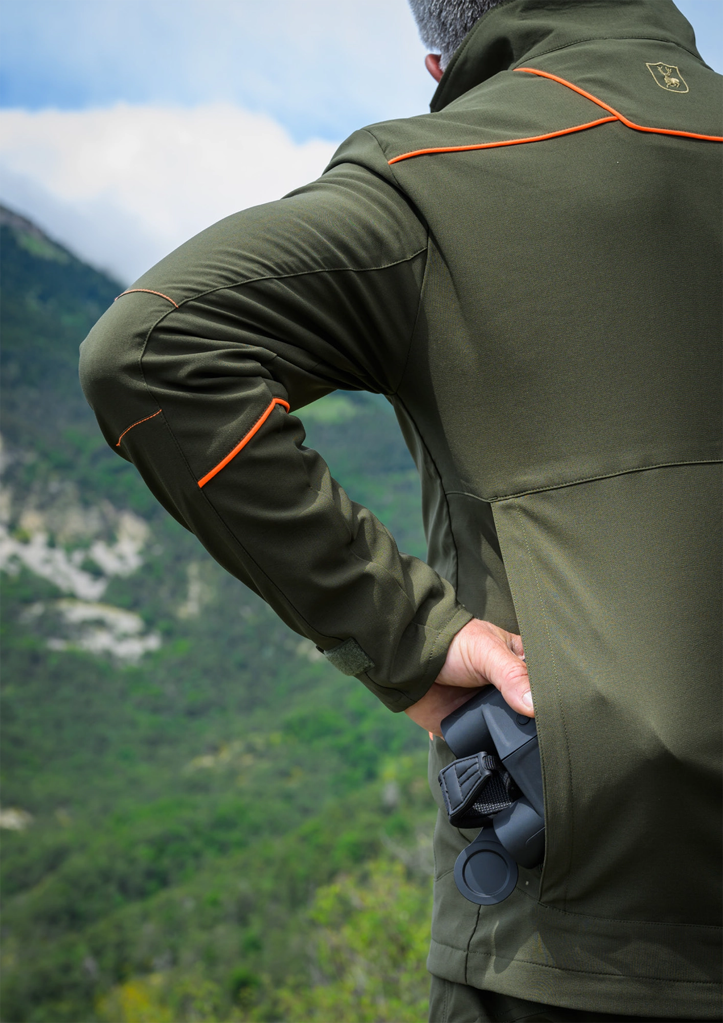 - lekki softshell myśliwski o nowoczesnym kroju w kolorze 361 Forest Green.