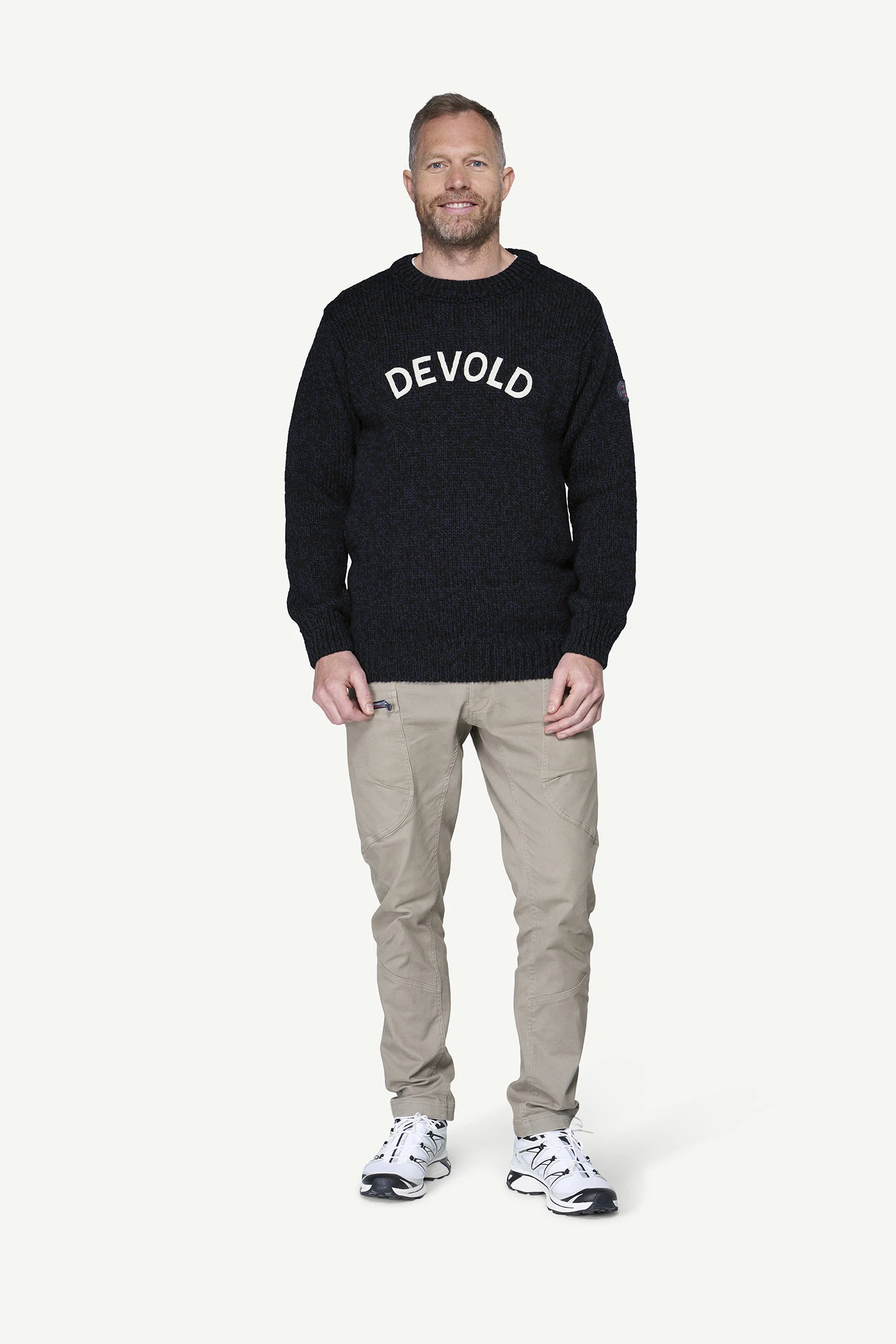 Devold Nansen Legacy Sweater - ciepły sweter z naszytym logo (100% wełna)