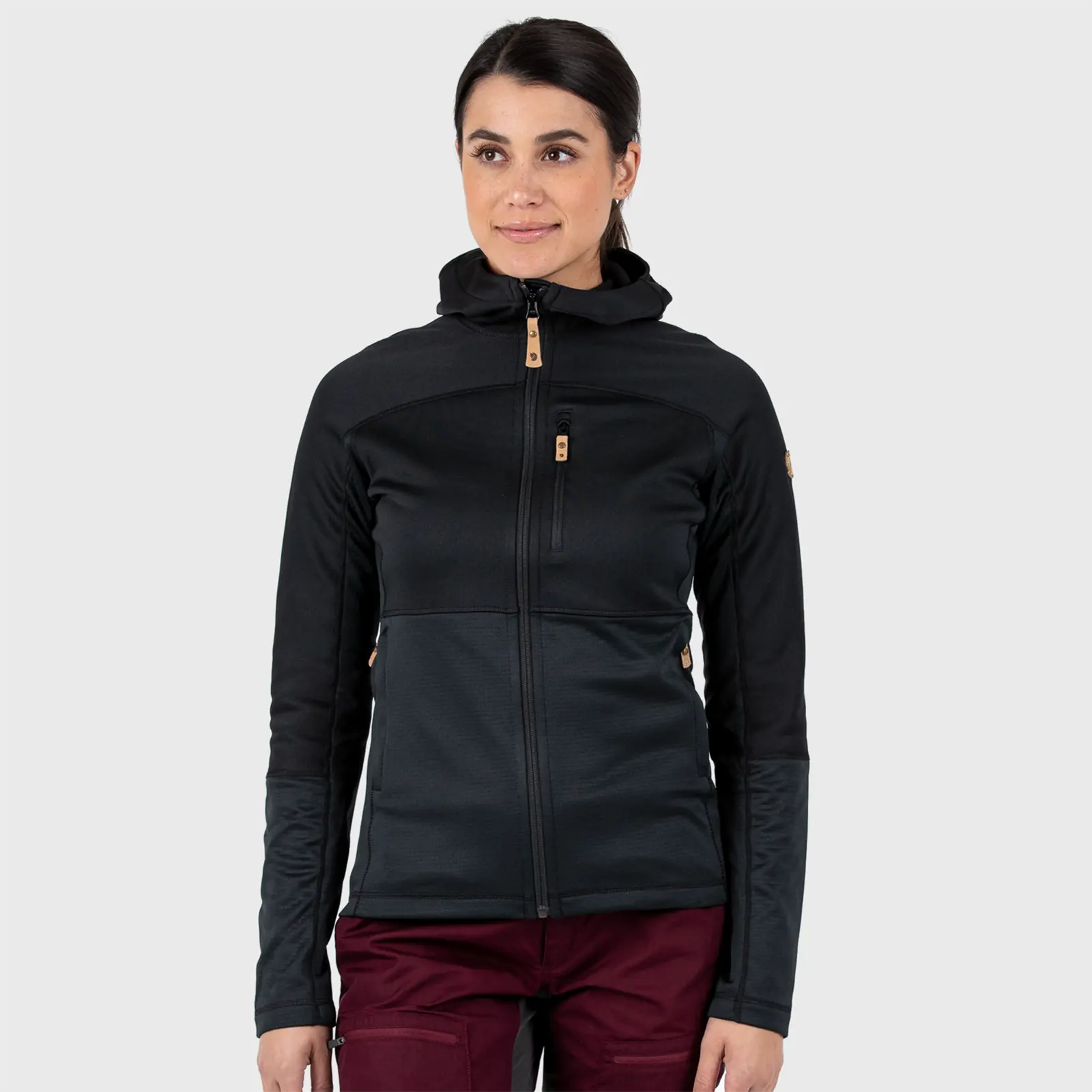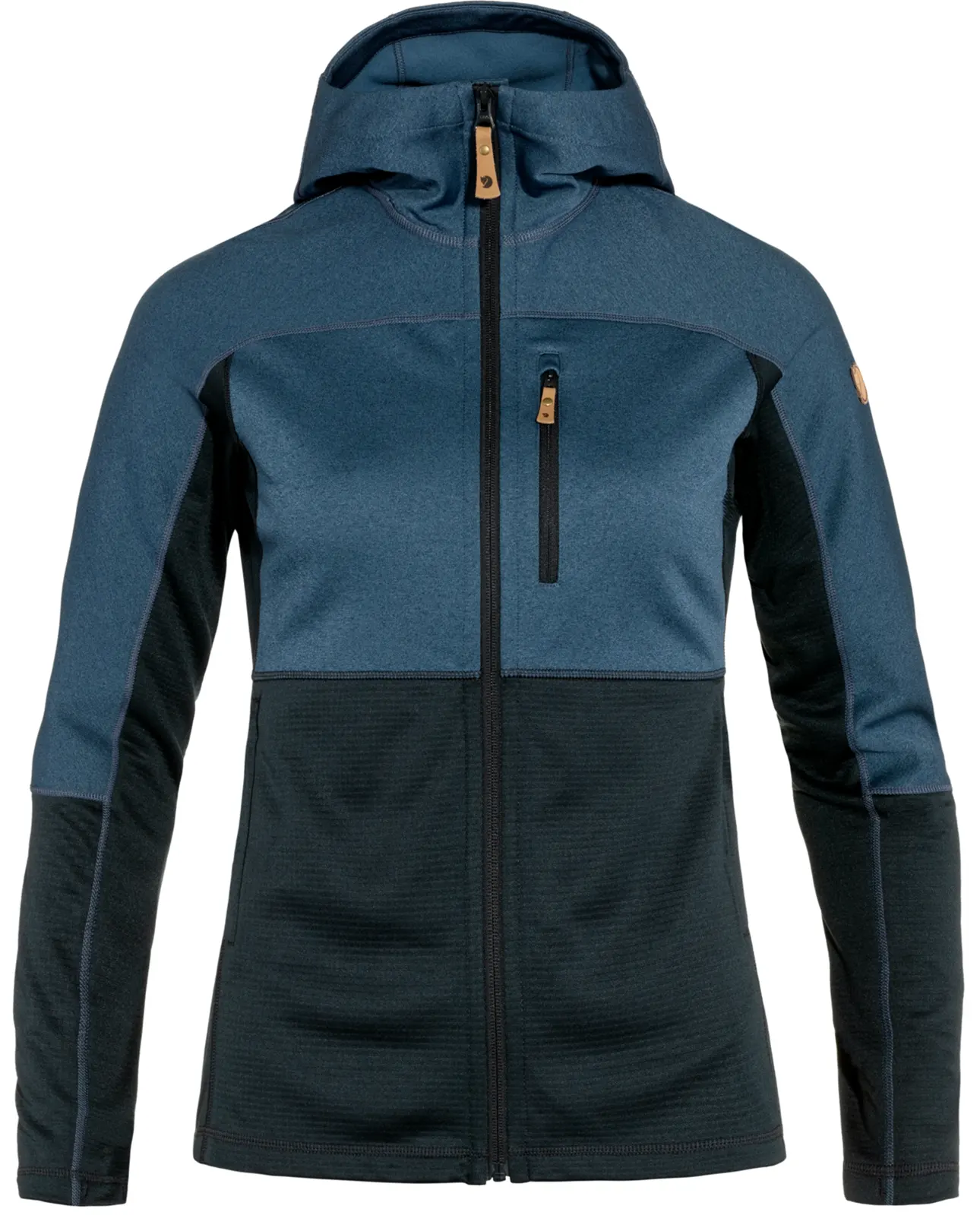 Lekka i wygodna bluza z kapturem wykonana z dwóch różnych rodzajów polaru ogrzewa w miejscach, które najbardziej tego potrzebują przy zachowaniu niewielkiej wagi i gabarytów. Kaptur, ramiona i przód są wykonane z polaru poliestrowego o płaskim splocie (częściowo z recyklingu) o miękkim, czesanym wnętrzu. Boki, dolna część z przodu oraz dolna część rękawów są wykonane z polaru o lżejszym splocie zapewniającego lepszą wentylację. Bluza doskonale nadaje się jako odprowadzająca wilgoć warstwa pośrednia na krótkie wycieczki lub chłodniejsze letnie wieczory. Wygodny kaptur i jednokierunkowy zamek błyskawiczny z przodu. Kieszeń na piersi i dwie kieszenie boczne, wszystkie zapinane na zamki błyskawiczne.