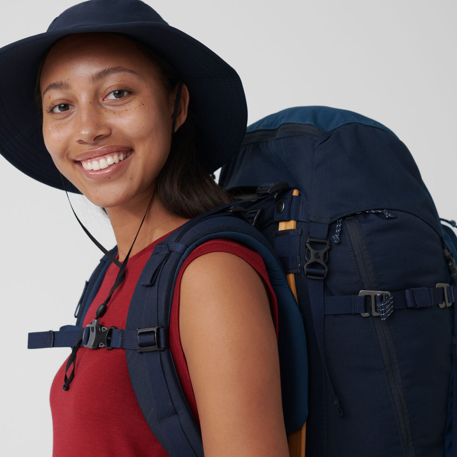 - Szeroki krój na ramionach zapewnia ochronę przed paskami plecaka i słońcem.