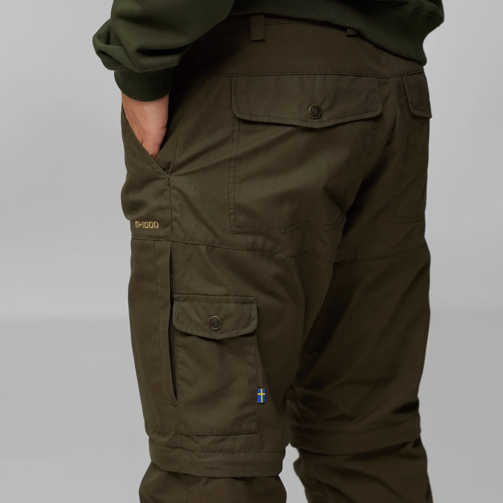 - Wytrzymałe spodnie trekkingowe wykonane z materiału G-1000 Silent.