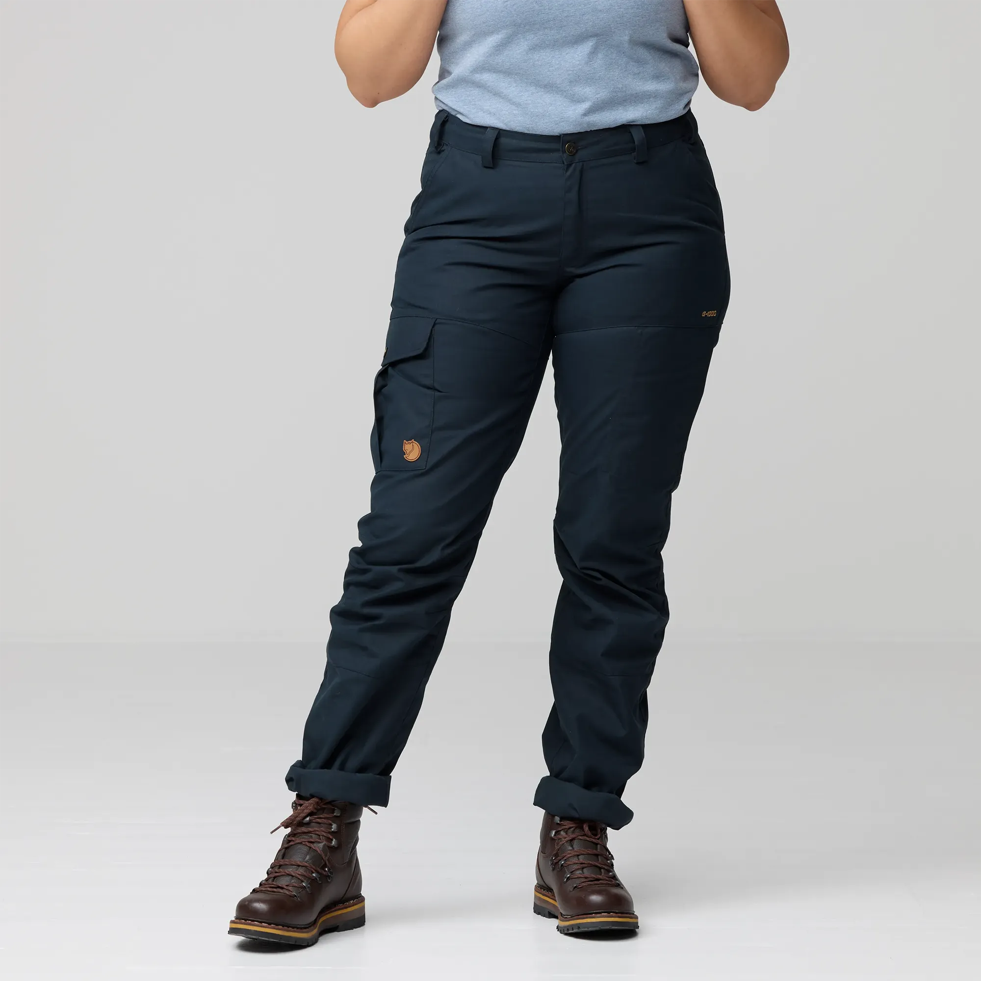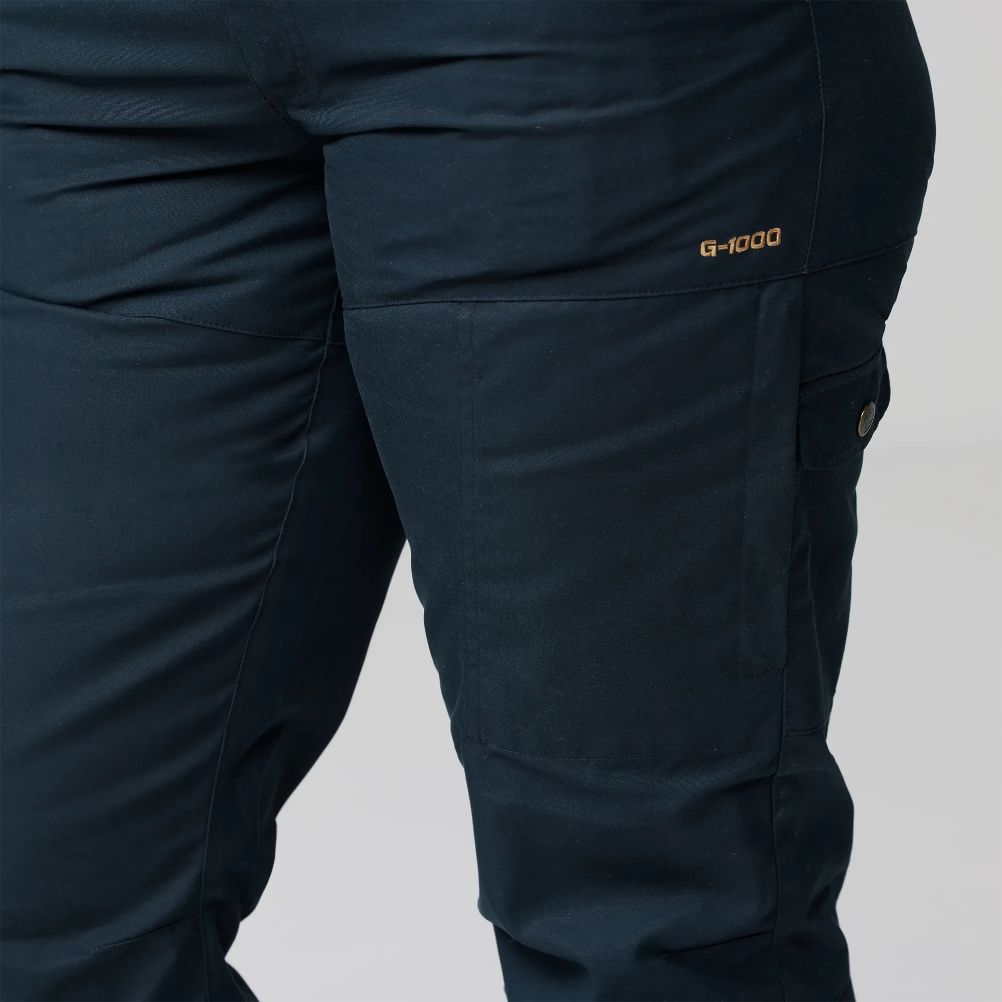Wytrzymałe i wszechstronne spodnie trekkingowe o kroju Curved Fit z bardziej zaakcentowaną talią oraz większą ilością miejsca w biodrach i udach. Model Pro klasycznych spodni Karla Trousers został zaprojektowany w nowym, dopracowanym kroju, zapewniającym optymalne dopasowanie i większą swobodę ruchów podczas chodzenia, kucania oraz długich wędrówek w górach i lesie. Spodnie wykonano z wiatro- i wodoodpornego materiału G-1000 Silent o lekko czesanym wykończeniu. Kolana i pośladki są wyprofilowane, a tył lekko wydłużony, aby zwiększyć komfort podczas noszenia plecaka. Niewykończone nogawki można łatwo dopasować do wzrostu. Model wyposażono w dwie kieszenie na nogawkach, w tym jedną zapinaną na zamek oraz jedną zapinaną na guziki z wewnętrzną kieszonką siateczkową na telefon. Dodatkowo spodnie mają dwie kieszenie boczne oraz dwie kieszenie z tyłu z klapkami.