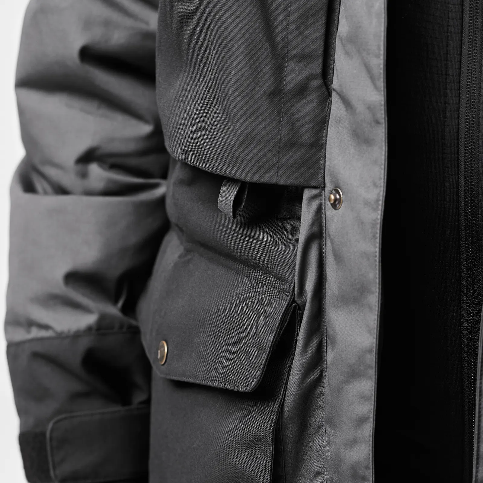 Dzięki doskonałej izolacji i przemyślanym detalom spodnie Polar Bib to doskonała odzież wzmacniająca na wyprawy i inne wypady w plener prowadzone w ekstremalnie niskich temperaturach. Na przykład dzięki specjalnemu umieszczeniu szelek można odpiąć część tylną, co pozwala na bezproblemowe korzystanie z toalety, a dwustronne zamki boczne na pełnej długości można wykorzystać do odprowadzania nadmiaru ciepła, a ponadto ułatwiają one zakładanie i zdejmowanie. Otwory z zamkami na biodrach dają dostęp do kieszeni w spodniach wewnętrznych. Są także dwie obszerne kieszenie na nogawkach na mapy, mniejsza kieszeń na scyzoryk i mała kieszonka w pasie — dobra do przechowywania baterii, ponieważ ciepło ciała przedłuży ich trwałość podczas zimnej pogody. Do zaczepu w pasie można przypiąć rękawiczki, czapkę, nóż lub butelkę z wodą. Kolana zostały ukształtowane anatomicznie, a część tylną uszyto z nylonu, aby zwiększyć elastyczność. Część tylna, kolana i wewnętrzna część dolnej części nogawki zostały wzmocnione tkaniną G-1000 HeavyDuty. Aby poprawić widoczność w zimowych ciemnościach, z tyłu i z przodu dolnej części nogawki umieszczono taśmy wzmacniające. Haczyki do podpięcia do butów pozwalają na podpięcie spodni do obuwia, dzięki czemu nie podwijają się podczas marszu w głębokim śniegu.