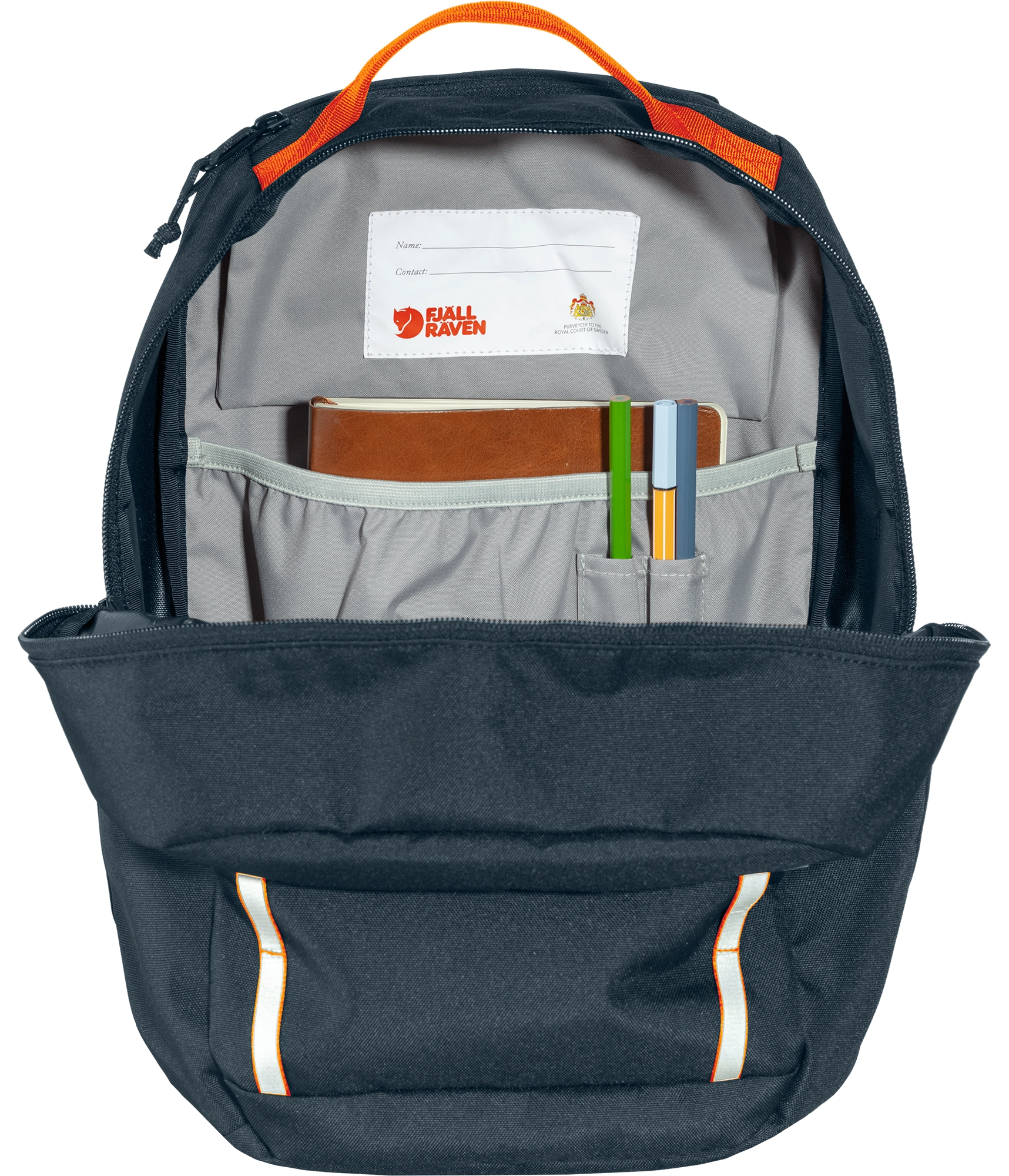 - przegroda w głównej komorze na zeszyty A4, z przegródkami na długopisy i wyściełanym spodem,