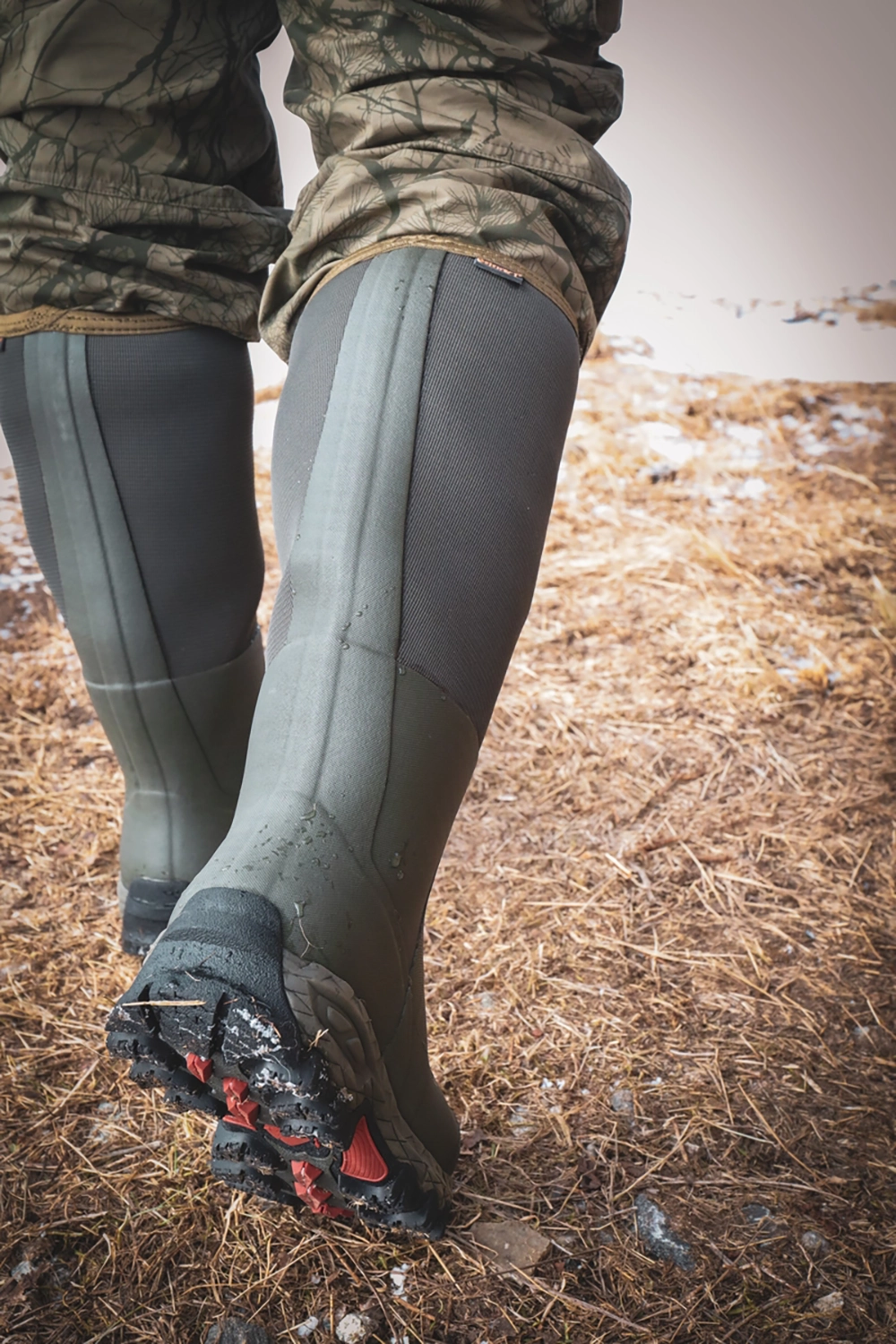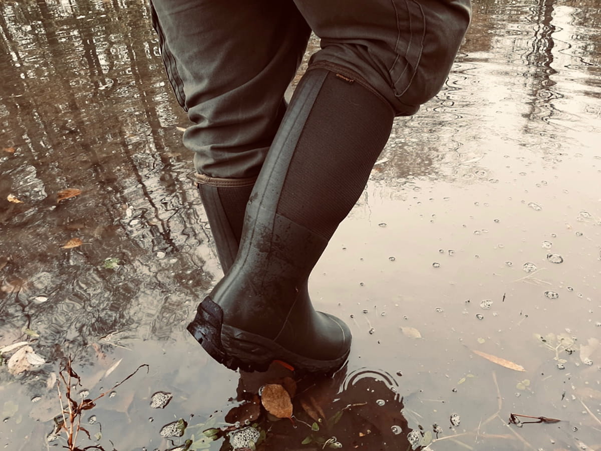 Gateway 1 Woodbeater 18" 7mm - kalosze terenowe z grubej gumy kauczukowej z cholewką wysoką na 46 cm, które sprawdzą się podczas aktywności w trudnym terenie, w lesie, podczas pracy w grząskim gruncie i na polowaniu w okresie jesienno-zimowym. Warstwa ocieplająca, w tym 5 mm neoprenu i 2mm G1-air spacer, która zapewnia stopie dobrą izolację w niskiej temperaturze skutecznie chroni przed zimnem. Kalosze terenowe gwarantują komfortowe użytkowanie w temperaturze do - 40°C. Zewnętrzna warstwa buta, wykonana jest z wulkanizowanej naturalnej gumy kauczukowej G1®70 i posiada dodatkowe wzmocnienia na palcach z bardzo mocnej gumy Japan-rubber™. Cholewka TPU posiada osłonę z rozciągliwego spandexu - Spandex Cover, szczelnie okrywając łydkę. Gwarantuje dobre dopasowanie i wytrzymałość obuwia podczas chodzenia przez gęste zarośla. Kalosze terenowe, dedykowane dla myśliwych i osób aktywnych w terenie w okresie zimowym z podeszwą Lynx Ice Grip+™ wytrzymałą na warunki atmosferyczne od -45°C do 30°C. Kalosze Gateway 1 Woodbeater 18" 7mm są dostępne w kolorze ciemnozielonym.