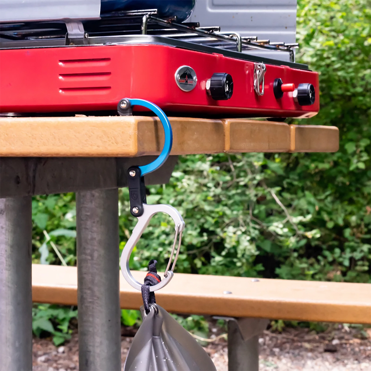 - doskonały do zawieszenia: plecaków, rowerów, desek SUP, lamp kempingowych, worków ze sprzętem turystycznym itp.