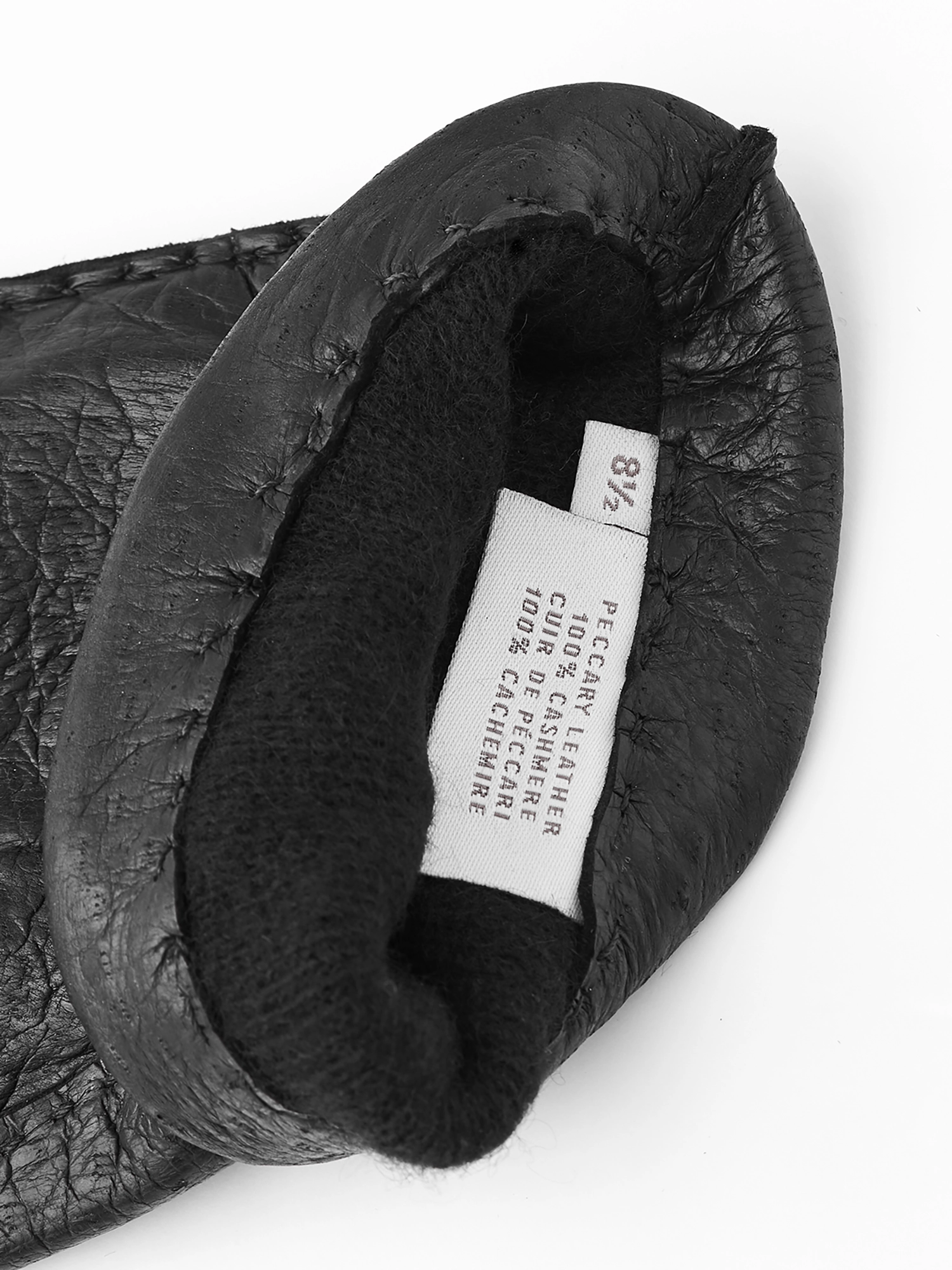 - Materiał zewnętrzny: skóra Pekari - pekari to rodzina ssaków spokrewniona ze świniowatymi, pochodzi od dziko żyjących świń / dzików z dżungli amazońskiej. Skóra jest miękka, elastyczna i dobrze izolująca, uważana jest za najbardziej ekskluzywną skórę używaną do produkcji rękawic.