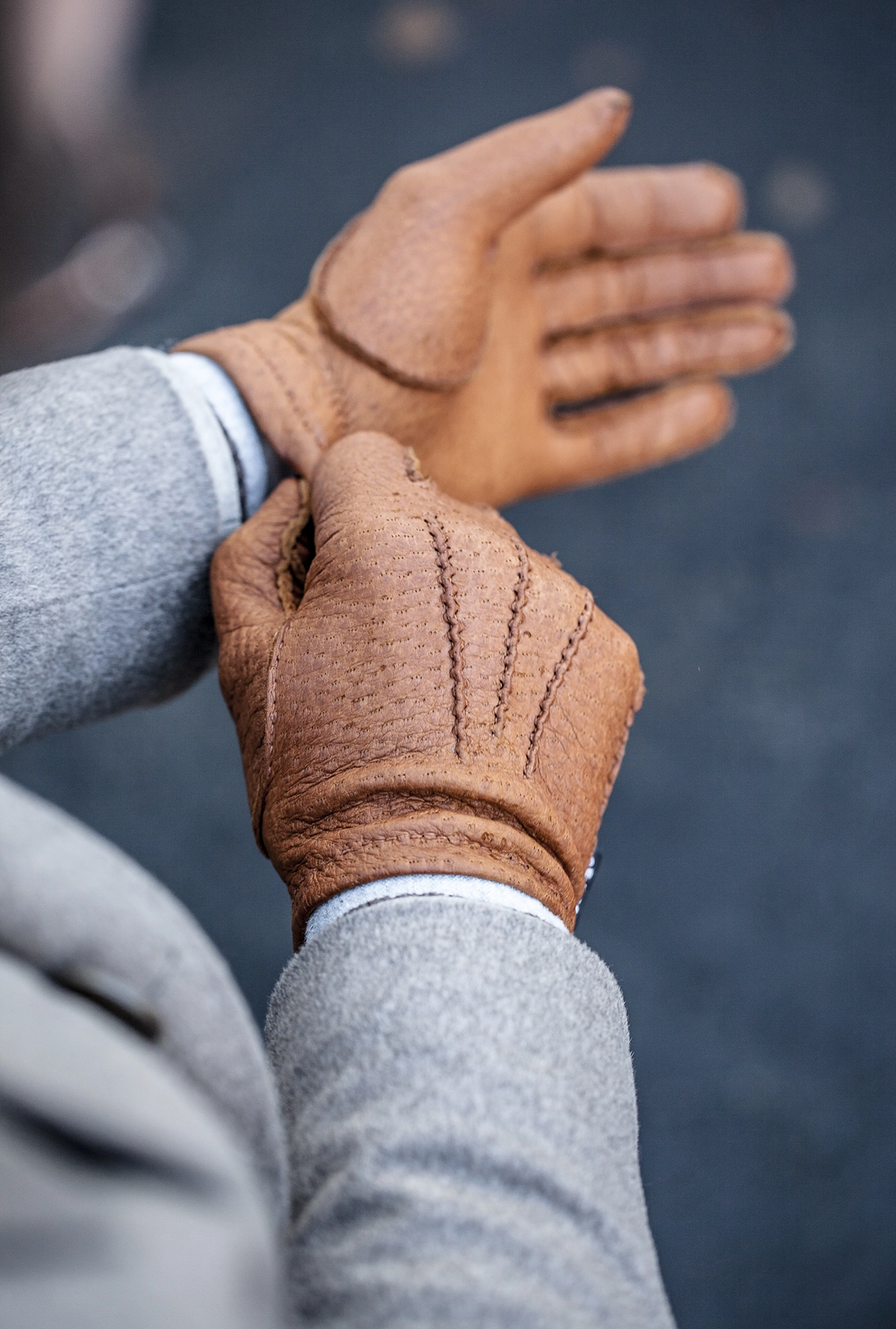 - Ręcznie szyte męskie rękawiczki z skóry pekari